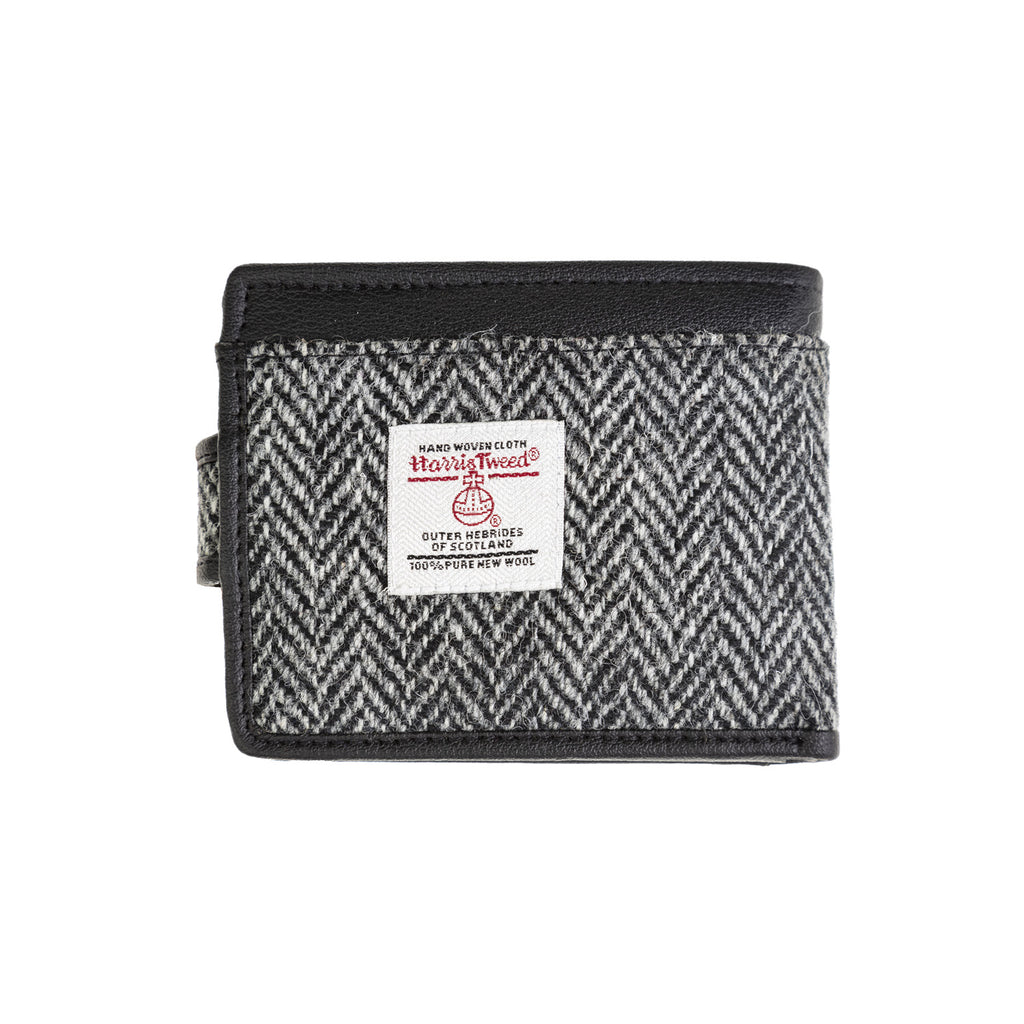 Ht Vegan Leather Mens Wallet Loop Closer Black & White Herringbone / Black