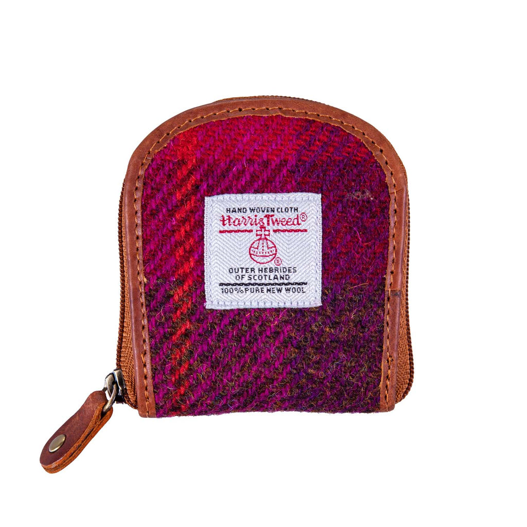 Ladies Ht Leather Coin Purse Cerise Check / Tan