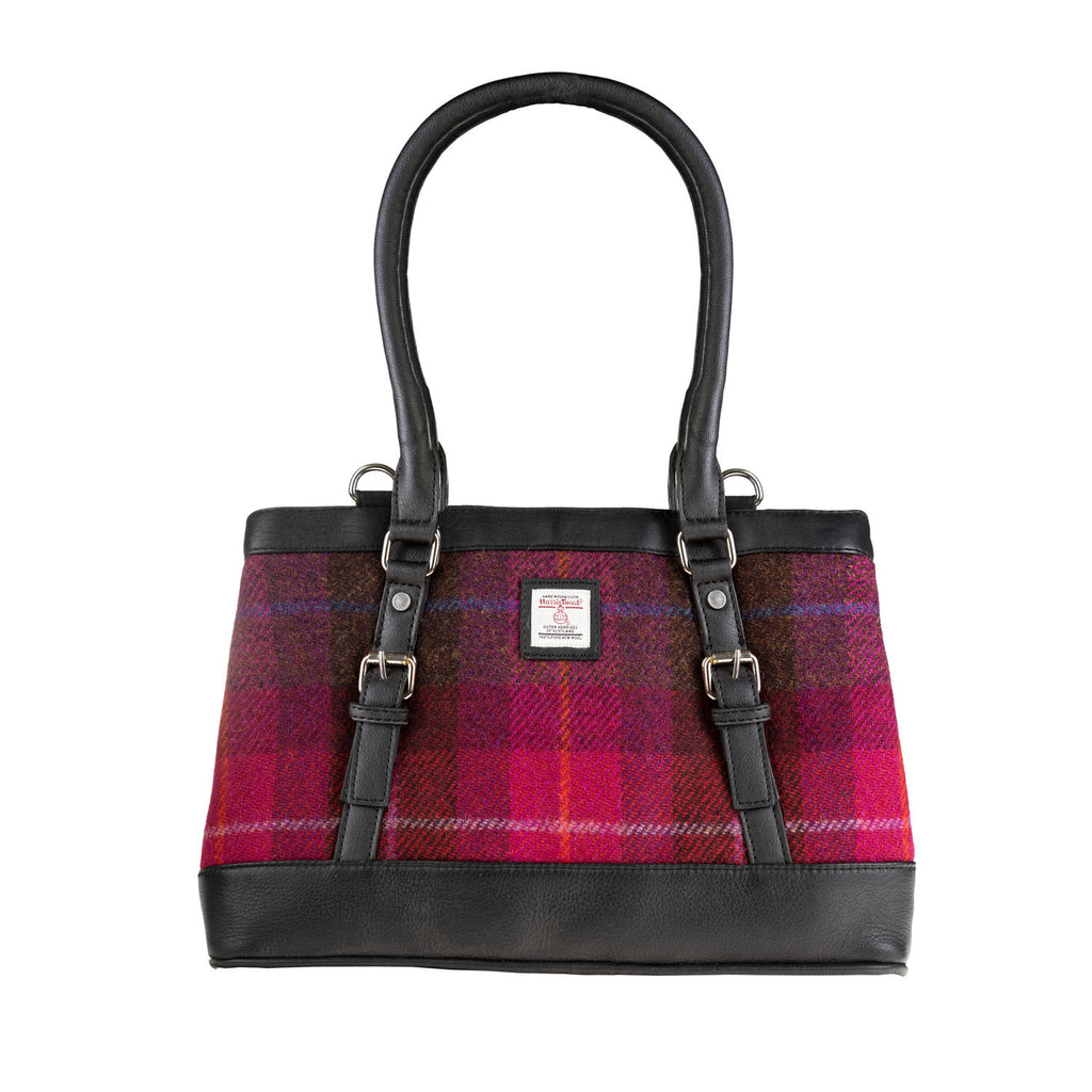 Ladies Ht Leather Hand Bag Cerise Check / Black