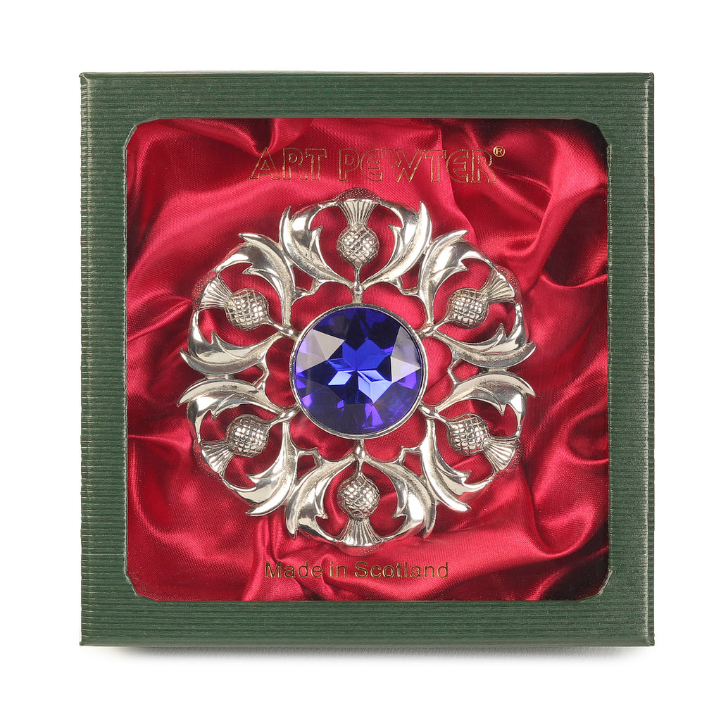 Scottish Thistle Plaid Brooch Dark Amethyst