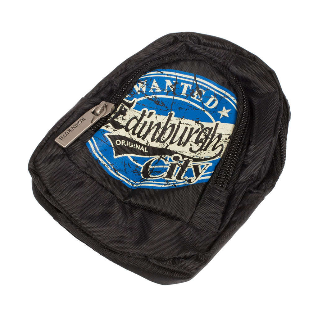 Wanted Edinburgh City Stamp pocket pouch by Robin Ruth. Features 2 zippers and plastic carabiner.